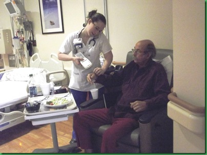She wasn't actually talking on the phone while giving the injection just while scanning his tag and the medicine. She did a good job of giving the injection since if the needle is not warmed and the shot done slowly, it can burn and David said it did not. Still she was certainly not warm and caring and that was the only time we saw her in his room all day. There are definitely nurses, and then there are nurses. But the same is true of technicians. Some are friendly and caring and some are just doing their job.