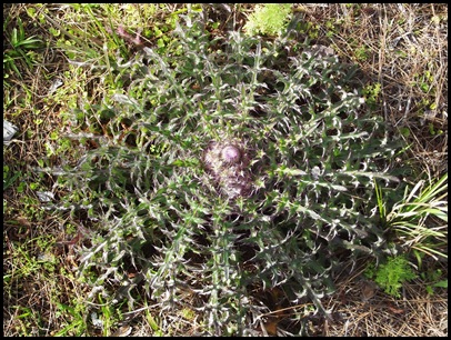 As many of you know, David has dumped two cameras in the water and at the moment has none. You may not know that he also has misplaced his binoculars. So we are sharing both my camera and binoculars. Usually I take the former and he the latter but today we trade places. On our way back to the campground we find a large area of giant thistle and he gets caught up in taking photographs of others enjoying them as we are. The thistle leaves are vicious but the flowers are soft as down. I’m pretty sure these identifications are correct but please let me know if I’m wrong.