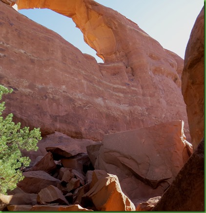 The light on the giant rock behind the arch is playing havoc with the cameras. That formation makes the arch looks small but you can see when I’m standing under it that it is anything but small.