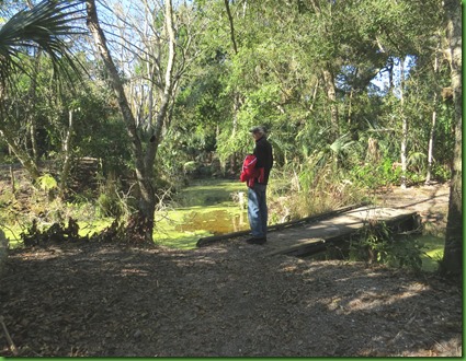 The wind has been picking up all day and by the afternoon it is gusting at 22 and 23 mph. Not great beach weather so in the early afternoon we again walk over to the Willow Pond trail. We take the same bike trail as before and notice again the way the habitat changes from the giant pine trees as we get further along. Notice my winter coat. This is definitely not what I was expecting from November in Florida