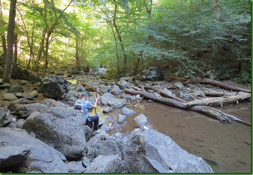 We cross tributaries flowing into the stream. This one is actually flowing under these rocks which make a great bridge.