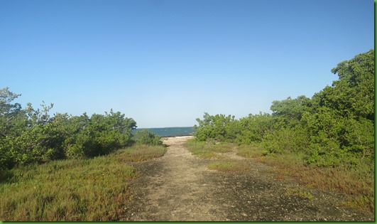 I’m looking for Bill and Nancy’s fishing site. I walk past the last campsite on the far end and find this little trail off to the right.