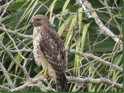 Well sort of do not stop. I really can’t help myself when I see this beauty by the side of the road. We may not be seeing woodstorks or roseate spoonbills but we are seeing lots of Red Shouldered Hawks. Or perhaps this guy just really gets around.