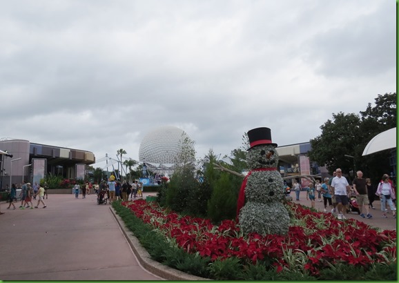 We walk around the park and enjoy the decorations before heading over to my goal for today, No Way Jose at Beaches and Cream for lunch. Notice the dark skies. Beaches and Cream is around and behind the World Showcase. Will we get wet walking over there?