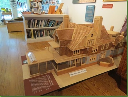 One of our very favorite things about the Dorr Museum is that it show cases some of the COA student senior projects. One of those is this amazing model of Dorr’s house which was, as I mentioned in a previous post, allowed to fall into ruin and was razed only a few years after his death. Given his importance to this national park, those actions were unconscionable. You can find pictures and information about what’s left in this post.