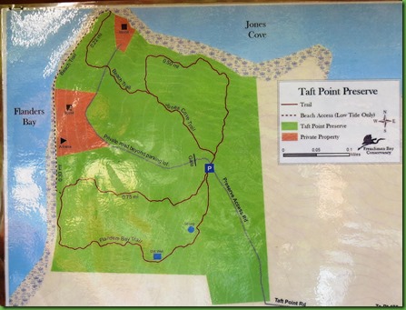 Last stop was Taft Point Preserve, also a Frenchman’s Bay Property on the corner of Jones Cove, no relation, and Flanders Bay. There was a well maintained dirt entrance road and a 6 car parking lot ensuring that there would not be too many people hiking and today there were none.