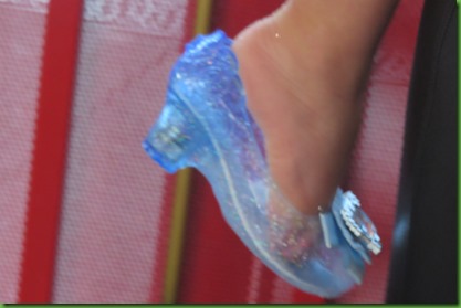 Waiting with us in line are Tinkerbell and Cinderella who is just about to lose her glass slipper.