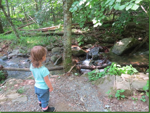 She’s pretty excited about the cascades on the branch when she sees them. “Wow” is the word she uses over and over.