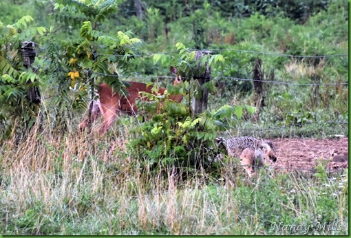 He’s running her ragged. We later speculate that she may have been trying to keep him away from some young ones as it almost seemed that she would go back toward him. She kept going to and then away from this mid field fence.